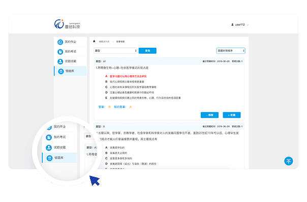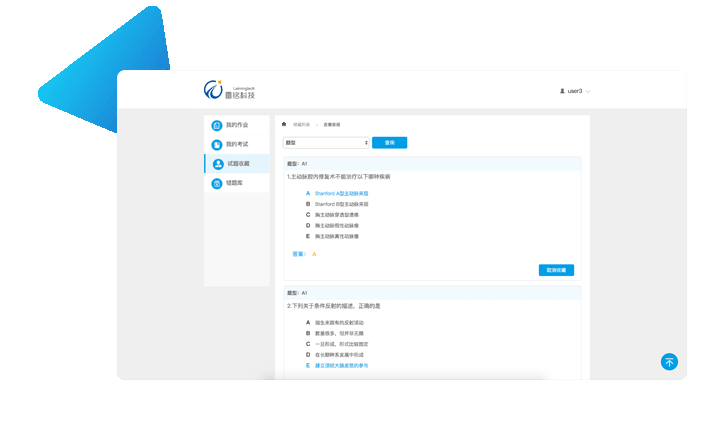 學(xué)生可以查看已完成對(duì)考試和作業(yè),并且對(duì)試卷中對(duì)試題進(jìn)行收藏操作,收藏對(duì)試題可在試題收藏中看到。