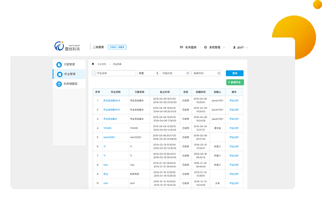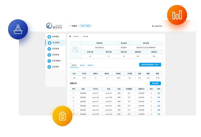 教師可以用組出端試卷進(jìn)行在線評(píng)測,可發(fā)布考試和作業(yè),作業(yè)功能類似于隨堂評(píng)測,考試類似于正規(guī)考試??荚嚳稍O(shè)置答案、試題隨機(jī),是否盲判,允許學(xué)生查看分?jǐn)?shù)和試卷試卷,學(xué)生答題端切屏次數(shù)等屬性。讓教師用戶可以隨心所欲等組建各種評(píng)測。