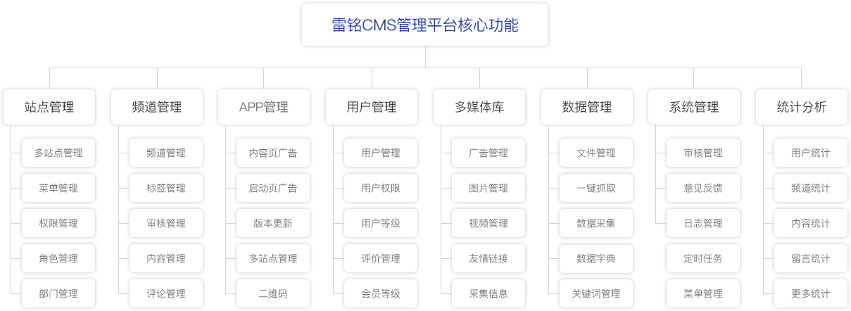 除支持以站點(diǎn)、欄目、文章為基本單位組織方式以外,還支持鏈接欄目、虛擬欄目、tag詞分類、多維分類等多種復(fù)雜內(nèi)容組織形式。