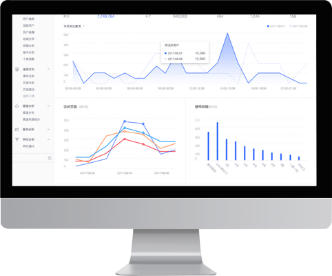實(shí)時(shí)概況主要統(tǒng)計(jì)商城的實(shí)時(shí)銷(xiāo)售額、銷(xiāo)售單數(shù)、下單買(mǎi)家數(shù)、實(shí)時(shí)瀏覽量、PC/移動(dòng)各自占比以及實(shí)時(shí)數(shù)據(jù)與昨天數(shù)據(jù)的對(duì)比等,方便運(yùn)營(yíng)方實(shí)時(shí)監(jiān)控商城數(shù)據(jù)監(jiān)控,做出經(jīng)營(yíng)決策